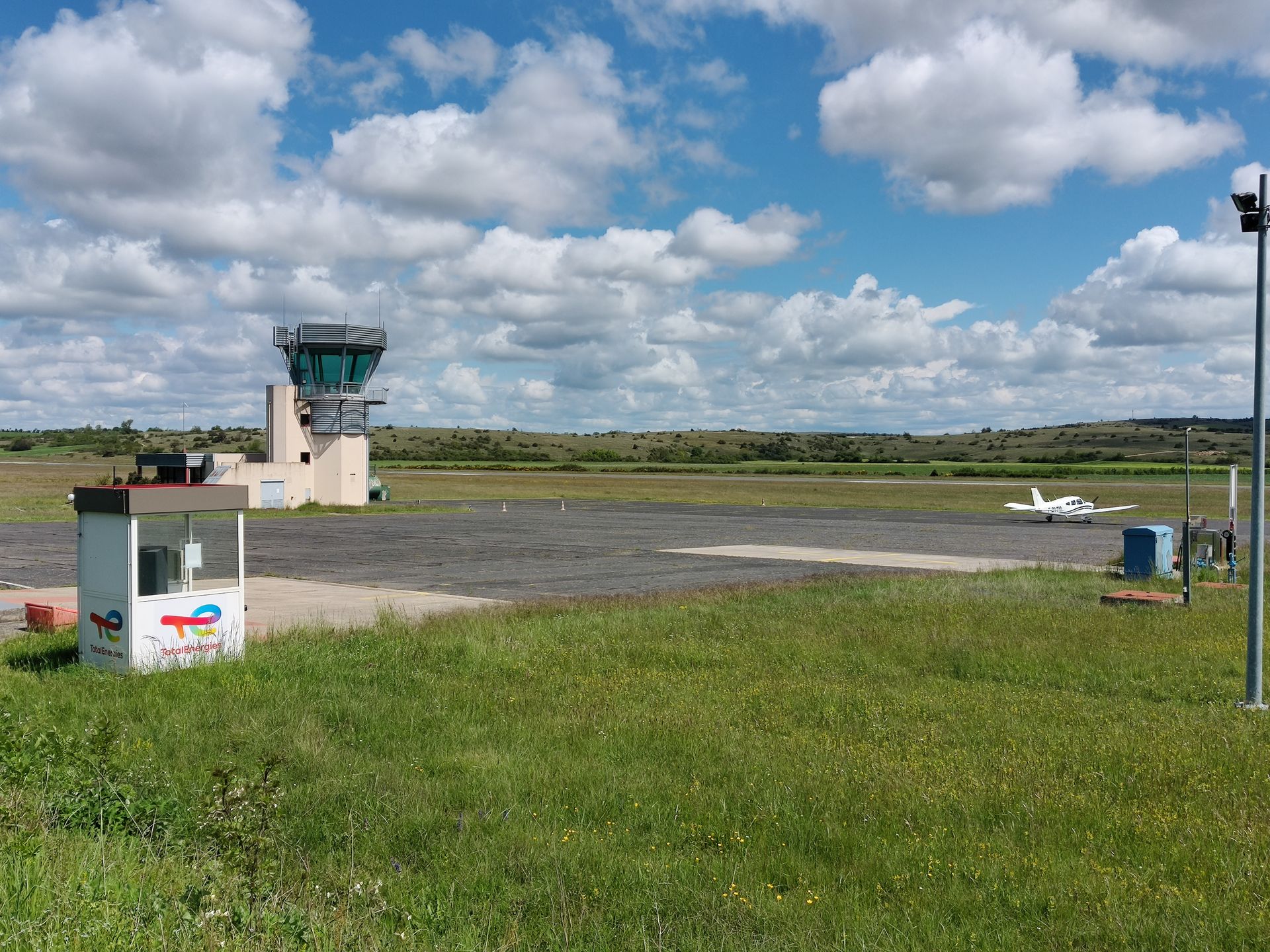 (Nous voilà à destination : l'aérodrome de Saint-Affrique, avec le village de Belmont en contrebas)